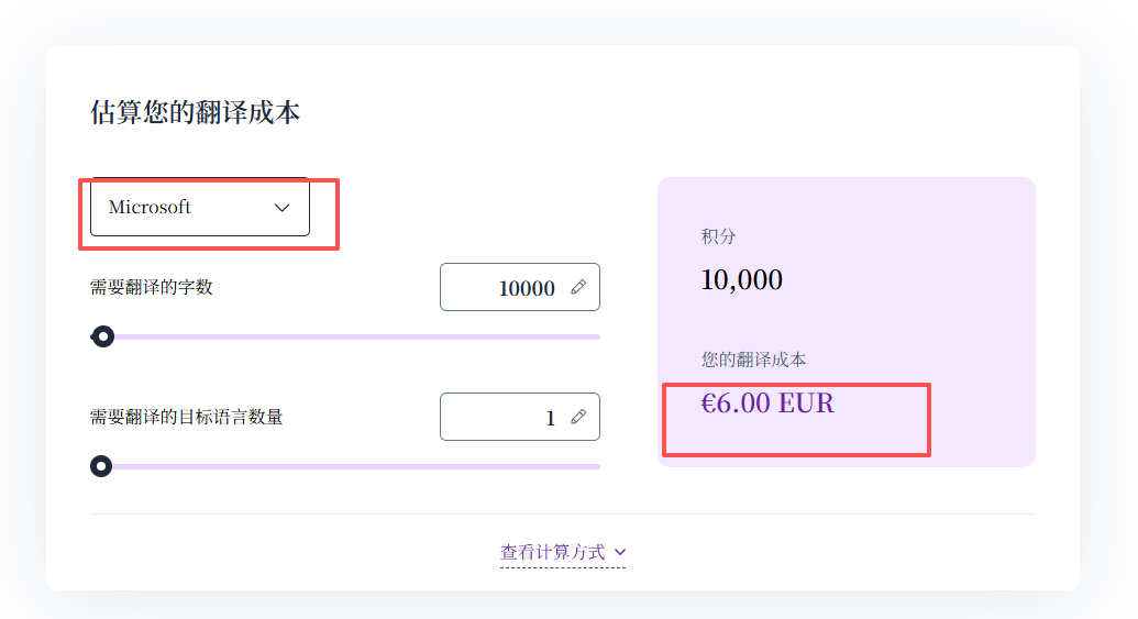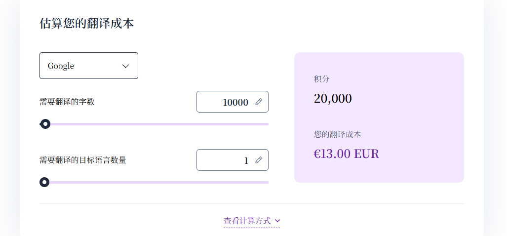 根据您网站需要翻译的字数, 计算方法如下: