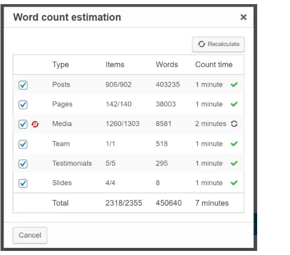 如何知道您网站上有多少字数 ?WPML后台可以选择对应的内容类型进行计算